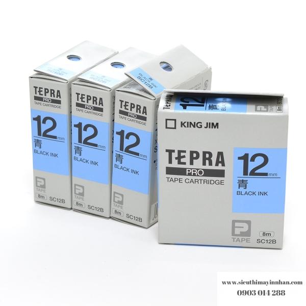 TEPRA SC12B - Chữ đen nền xanh dương 12mm